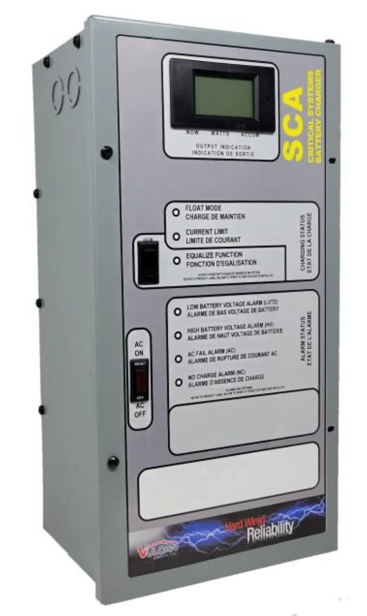 Vulcan has been the engineers' choice for standby chargers in critical applications for decades — many project specs recommend Vulcan by name. These SCA chargers come with a 10-year performance guarantee and can be engineered with basic or extended features such as alarms and high-precision metering.
